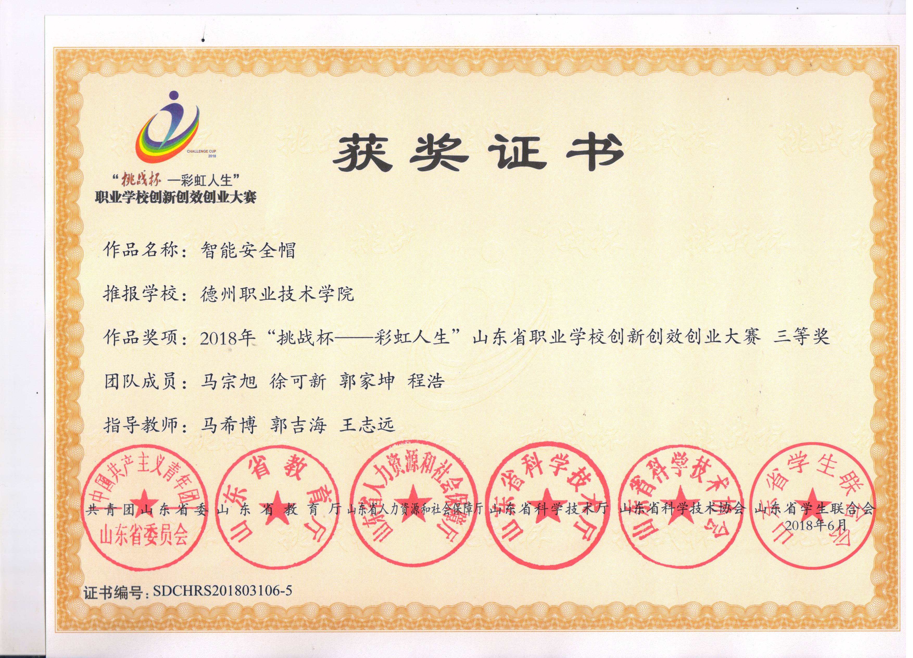 3. 2018年“挑战杯——彩虹人生”山东省创新创效创业大赛