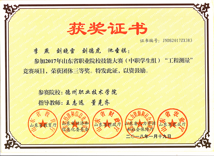 2017年山东省“技能兴鲁”技能大赛职业院校测绘地理信息职业技能竞赛 团体二等奖