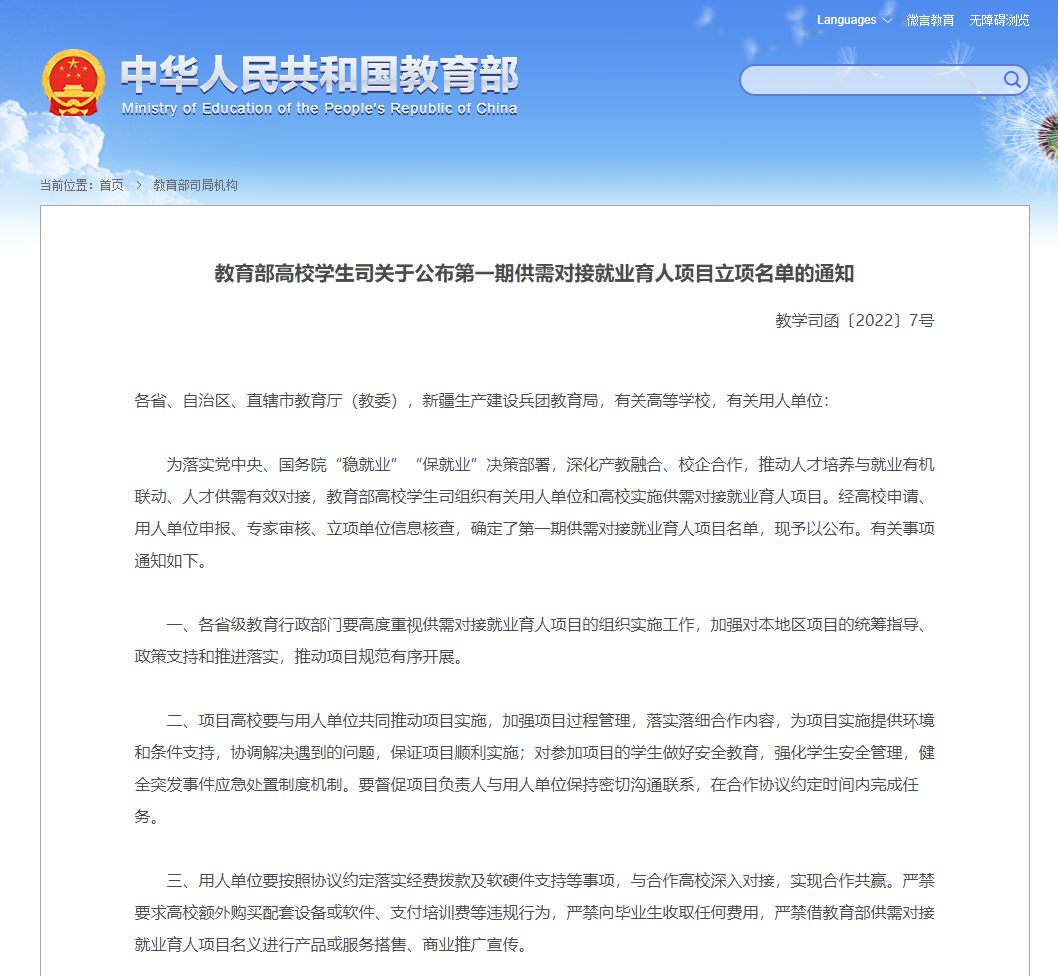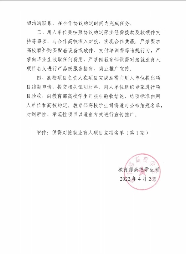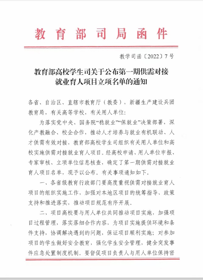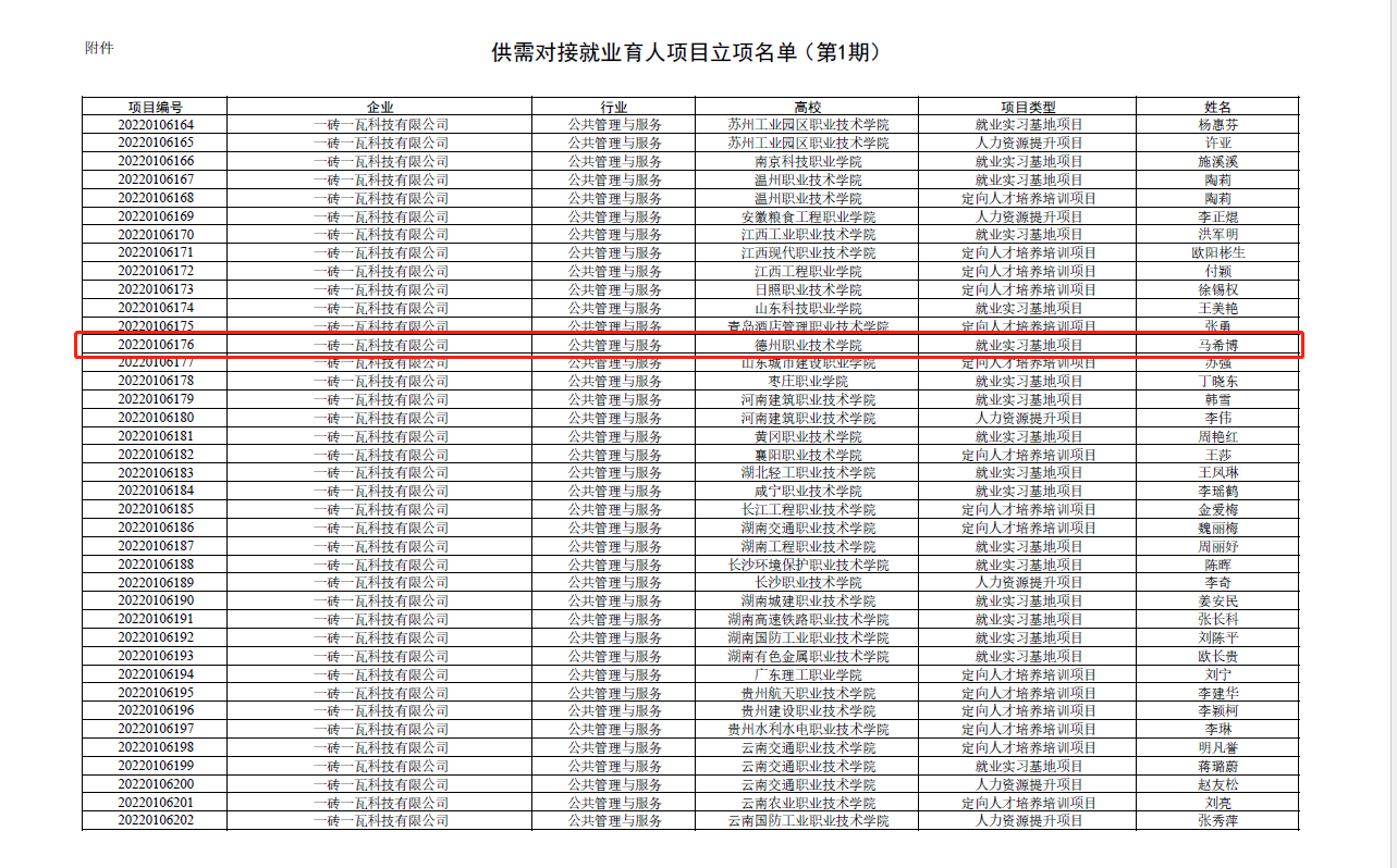 2022年4月,中华人民共和国教育部网站公布了《教育部高校学生司关于公布第一期供需对接就业育人项目立项名单的通知》,188点点工程造价专业与一砖一瓦科技有限公司合作共建的“数字造价就业实习基地”于成功入选。该项目的入选为进一步提高毕业生的就业质量及为用人单位培养、招聘更多实用型、复合型和紧缺型人才提供了研究平台。