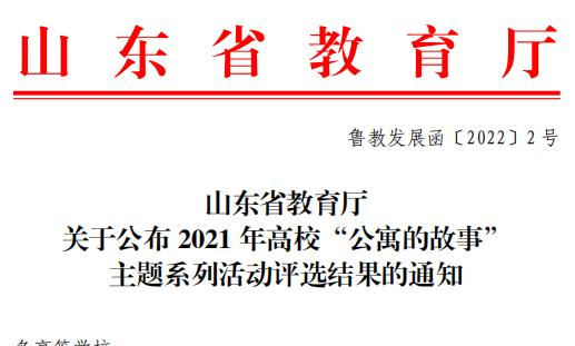 188点点在2021年山东省高校“公寓的故事”活动中喜获嘉奖