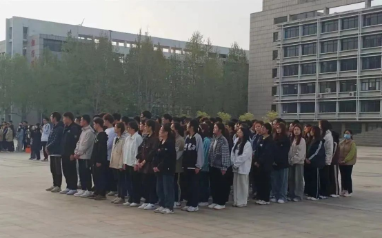伴随着嘹亮的歌声,五星红旗冉冉升起。全体师生肃穆敬礼的,自豪与骄傲之情油然而生。
