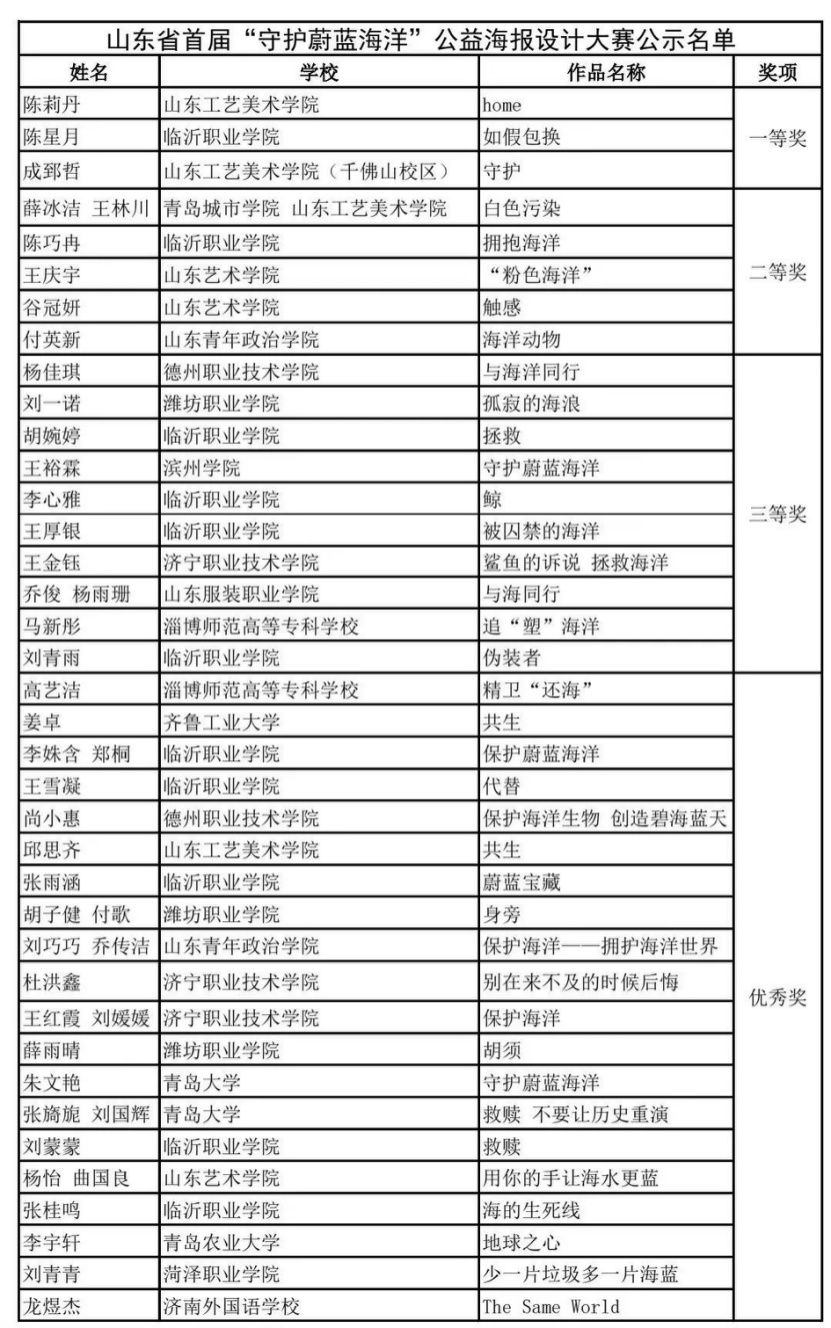 为了普及海洋知识、宣传海洋意识、弘扬海洋生态文明,牢固树立“保护海洋生态系统,人与自然和谐共生”生态文明理念,山东省举办首届“守护蔚蓝海洋”公益海报设计大赛、“我和海洋的故事”征文与绘画作品大赛。