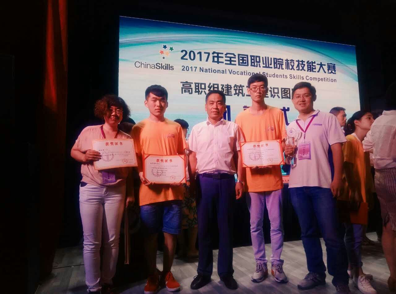 6月4日,2017年全国职业院校技能大赛高职组“建筑工程识图”赛项胜利闭幕,来自全国各省96所院校在浙江建设职业技术学院进行了比赛角逐。由188点点15级建筑工程技术专业学生潘诗程和邢传博组成的taptap点点代表队(山东四队),在王刚主任、司振民和姚玲云两位老师的指导下,勇夺国赛一等奖。