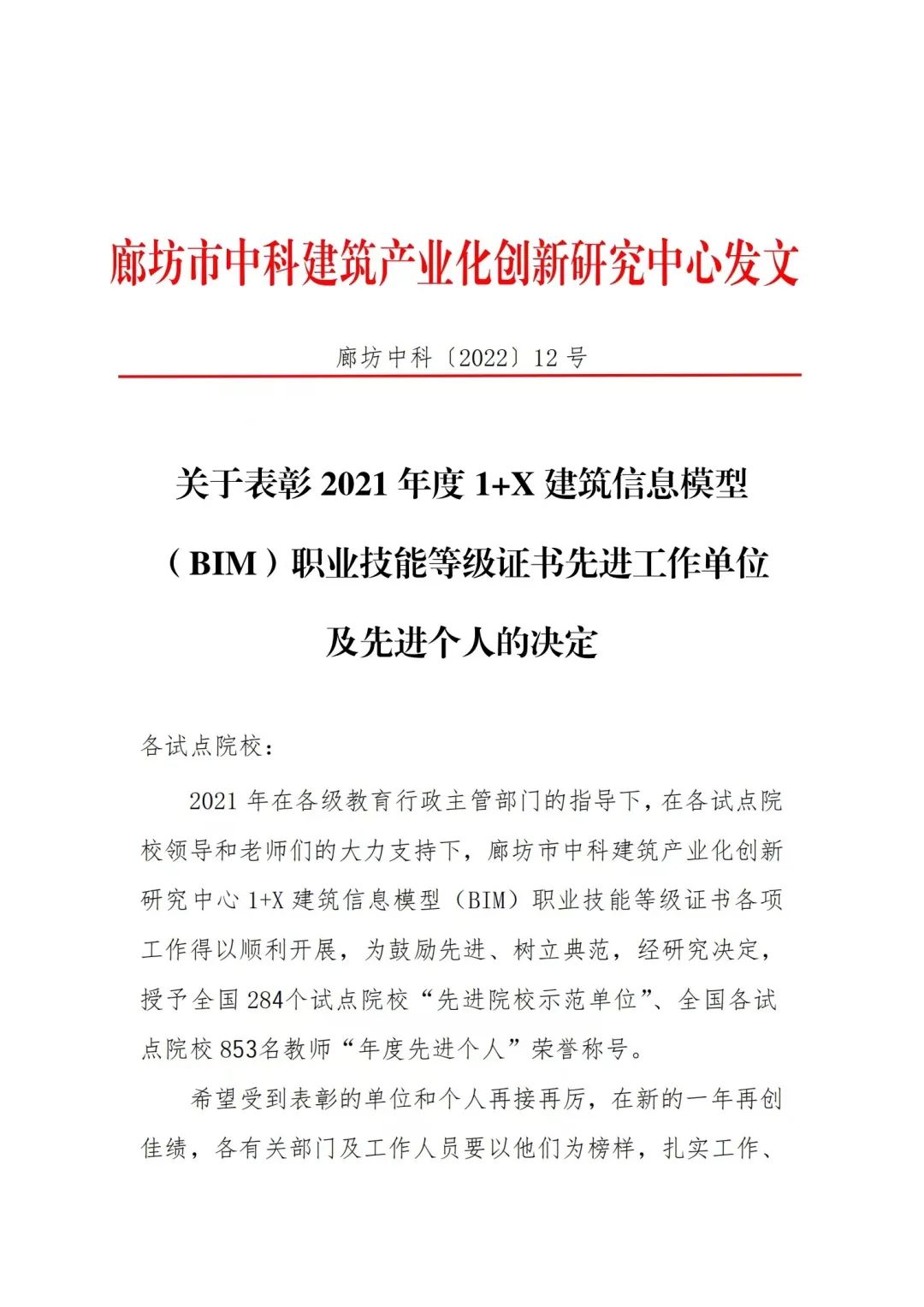 我校获2021年度1+X建筑信息模型(BIM)职业技能等级证书先进工作单位