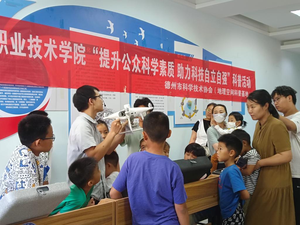 德州市地理空间科普基地负责人肖峰老师带领学员们了解了地理学发展历程及北斗定位原理,认识了测量仪器及其用途,动手制作了水火箭并体验发射过程,操控无人机飞行及航拍体验,在热烈的氛围中逐梦苍穹,探索“地理空间奥秘”。