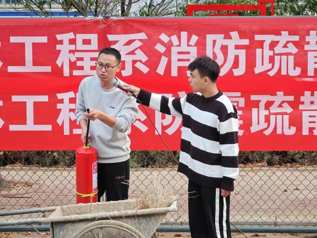 演练前,我系学生科副科长孔祥飞向学生详细讲解安全消防教育等知识,并向学员讲解、示范地震、火灾时的自救方法,明确疏散的信号和路线。