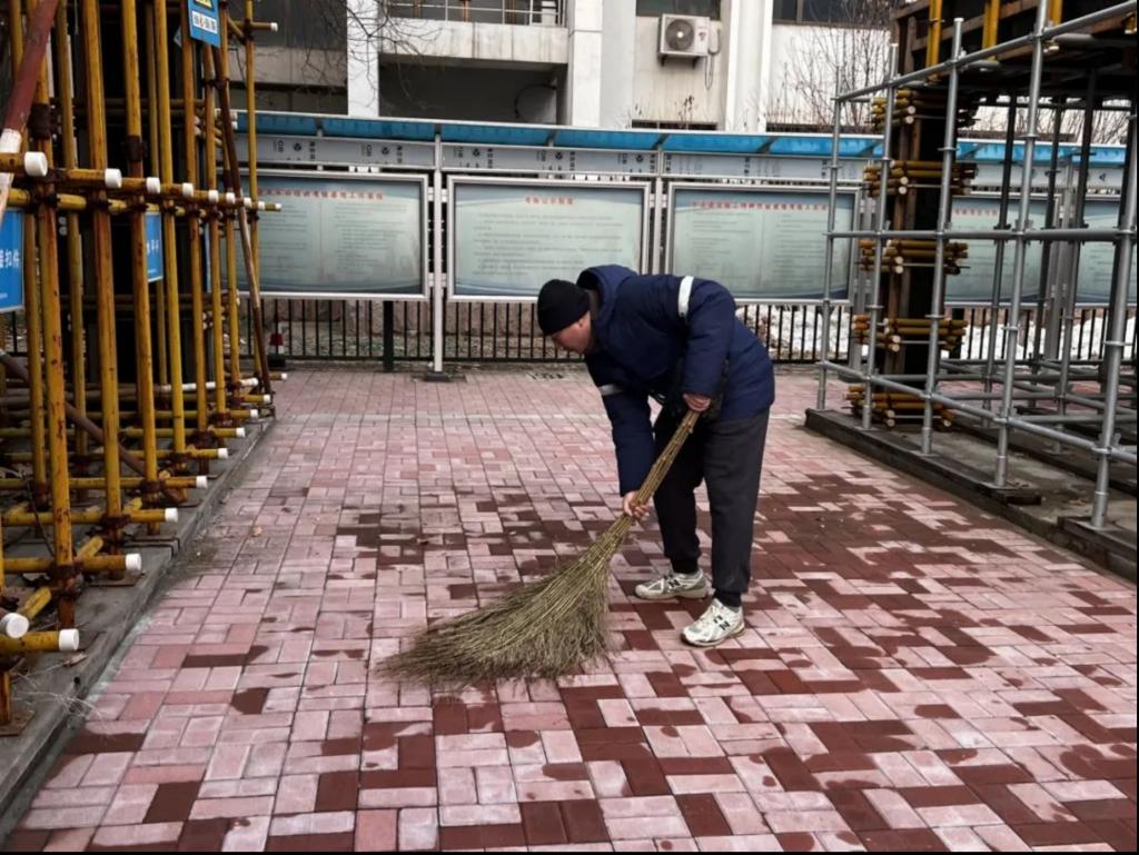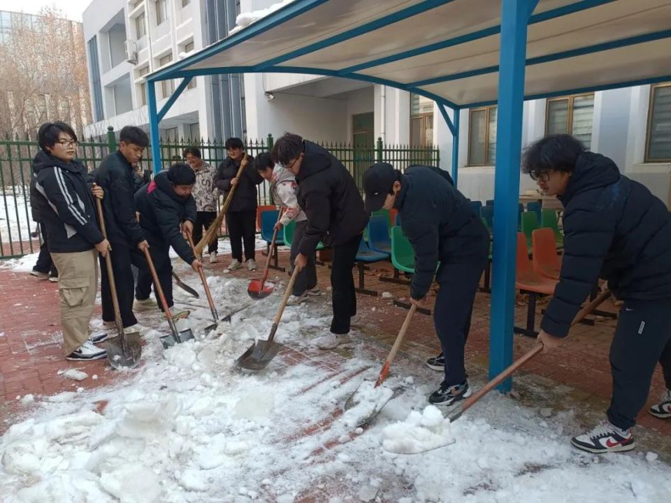 大家分工明确,按照指定区域快速开始工作,学生会成员们不畏严寒、努力争先、协作互助,迅速进入状态,有的负责清扫道路,有的负责铲运雪堆。老师们也积极参与其中,清扫着校园的每个角落,寒冷的天气和湿滑的路面也没有影响到大家的工作效率和热情。