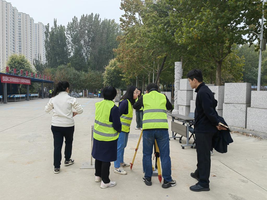 考核现场,老师们专注投入,严格按照建筑轴线测设工艺流程要求进行仪器架设,测点读数,定点弹线等工作,有条不紊地完成建筑轴线测设全过程,展现出极高的专业素养。考核过程中,评委们始终保持着公正、公平的态度,按照既定的评分标准,从操作安全性、准确性、规范性到操作熟练度等多个方面进行综合评估。