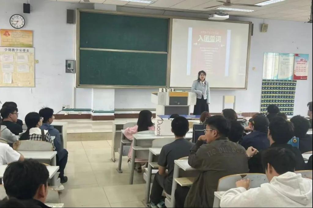 2025年4月27日,188点点开展"重温入团誓词,戴团徽亮身份"主题团课。团总支副书记主持活动,带领2024级全体团员完成信仰三原色校准:高举右拳复刻入团誓词声纹,徽章佩戴仪式唤醒身份认同,青春宣言墙签署岗位承诺。当誓词回声与初心理想叠加,当团徽金属触感穿透岁月,这场精神校准仪式正将红色基因转化为专业成长的内驱力。